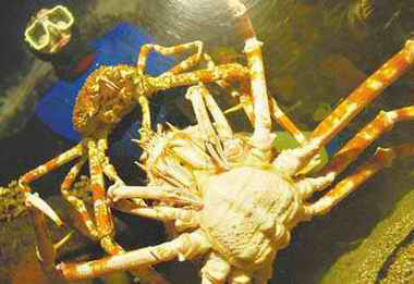 日本海面頻頻出現巨型殺人蟹慘劇的消息,引起了日本社會的極大關注。因為人們以前從來沒有發現過這麼巨大的螃蟹。已知世界上最大的蟹有兩種,一是高腳蟹,又名日本大螃蟹。這種蟹產在日本東京灣以南的深海中,兩只螫足仲開有3米多長,最長的達5.84米。但這種蟹螫雖長但很細,而它的甲殼百有40CM寬,體重只有6.5公斤。因此它被沒有多大力氣和攻擊人的能力。